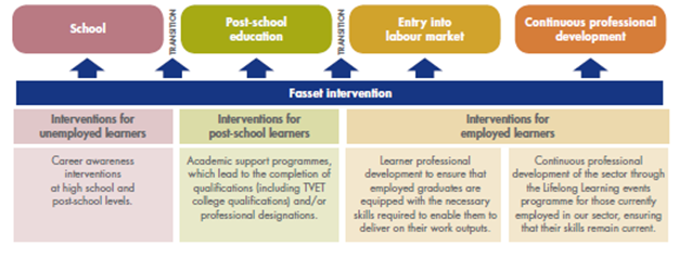Fasset has adopted a pipeline approach to funding. The pipeline approach seeks to identify the education and training value chain of people who want to enter into the sector or who are progressing up the value chain within the sector.